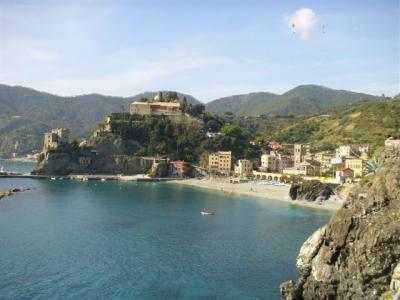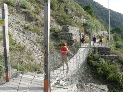 Z vlaka smo izstopili v zadnjem mestu, gledano od La Spezie proti Genovi, v Levanti. Tam smo nameravali peš do Monterossa, pa sta nam dva domačina povedala, da je pot zelo težka in strma. Pri tem sta pogledala našo obutev. Očitno so se jima športni copati zdeli za neustrezno obutev. Hitro smo si premislili, odšli nazaj do vlaka in z njim do Monterossa. Od tam pa smo zares začeli pešačiti.