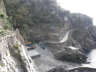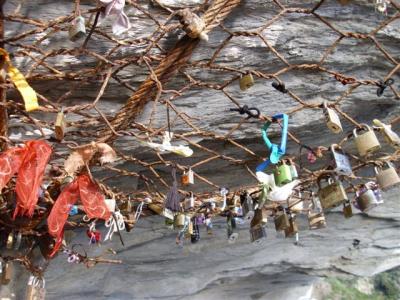 Ura je bila že skoraj tri, zato smo se odločili, da se z vlakom peljemo do predzadnjega mesteca Manarola in od tam peš do zadnjega, to je Riomaggionare. Zadnji del poti je najkrajši, samo 20 minut, zato pa najbolj urejen. Pot je široka, tlakovana, prav nič planinska, ima pa zanimivo ime - pot ljubezni. In res smo videvali znake ljubezni, ključavnice. Te so povsod, na skali, na ograji, na mreži. Prinašajo jih ljudje in s tem simbolično zaklenejo svojo ljubezen. Ključa seveda ni zraven. Je pa to kar donosen posel, ena takšna mala ključavnica stane 8 evrov. Nam se je to zdelo preveč in smo raje sklenili, da jih bomo dobili ceneje pri nas in gremo še enkrat tja.