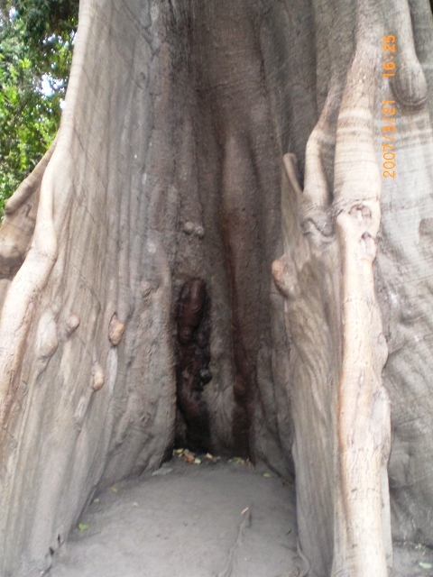 Pot nas je vodila skozi park z mogočnimi drevesi, njihova stebla so ljudje uporabljali kot zaščito pred živalmi in v krošnjah tudi stanovali.