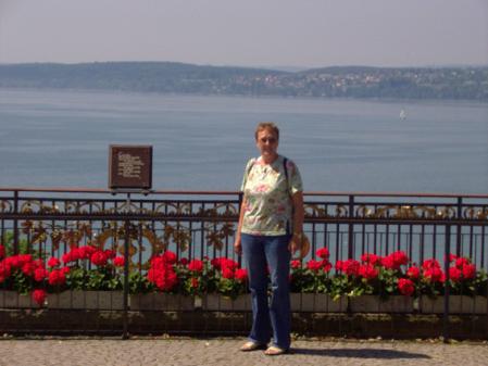 Po končanem obisku, bila je nedelja popoldan, sva se odpeljala proti Avstriji. Vmes sva postala na počivališču nad Bodenskim jezerom in tokrat z južne strani občudovala jezero in lepo pokrajino onkraj jezera.