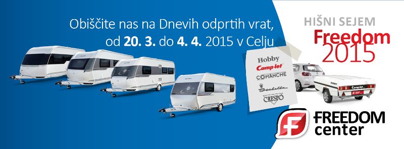 Tradicionalni Freedom hišni sejem letos poteka od 20. marca do 4. aprila. Oglejte si novosti iz sveta kampiranja, razstavo številnih modelov počitniških in šotorskih prikolic, baldahinov, kamp kuhinj, največjo izbiro kamping stolov in ležalnikov ter kamp pohištva. Med vikendom - (sobota 21.3. in nedelja 22.3.) bo potekala degustacija z Big Green Egg žara!!