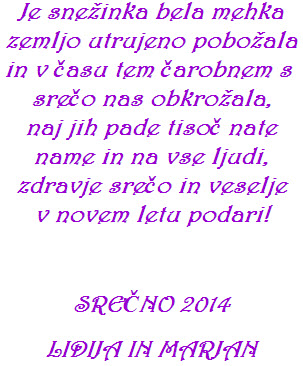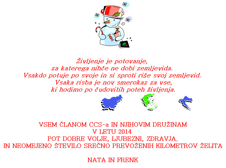 Staro leto se poslavlja, novo se nastavlja, zato vsem CCS-ovcem želiva obilo sreče, zdravja in veliko varnih potovanj Vera in Lado.
