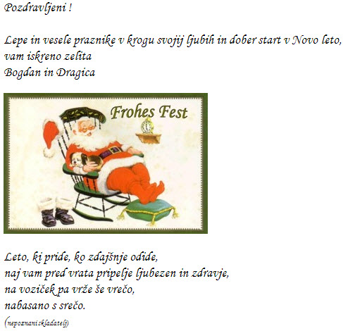 VSE SOTRPINOM PRIJETNIH DRUŽENJ V NAŠEM KLUBU ŽELIVA SREČEN BOŽIČ TER POLNO ZDRAVJA V PRIHAJAJOČEM LETU IZ SRCA METKA MILAN POLZELA