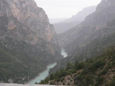 Ponoči je začelo deževati in prenehalo ni niti podnevi. Ves dan je tudi pihal močan veter. Le nekaj kilometrov od La Paleda smo prišli do najglobljega, najdaljšega in najbolj divjega kanjona v Evropi (Grand canyon), ki ga je v apnenčasto planoto izdolbla reka Verdon. Cesta pelje 1000 m (in še malo čez) visoko, je dovolj široka in urejena. Pogled navzdol je veličasten, seveda pa ne smete imeti vrtoglavice. Nam je razgled kvaril močan veter z dežjem, ni nam pa mogel vzeti navdušenja nad kanjonom. Na dno kanjona so speljane pešpoti, hoja navzdol pa traja osem ur.