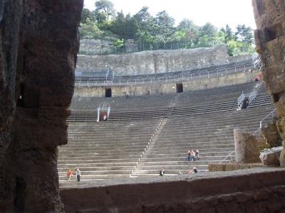 Rimljani so bili tudi v Nimesu in tam zgradili amfiteater. Imeli smo dober namen ogledati si mesto in njegovo zgodovino in se zato v dobri veri, da bomo parkirali, odpeljali naravnost v center. Vse je ostalo samo pri namenu. Promet je bil izredno gost (saj pa je ura tudi bila okrog dvanajste), parkirišča vsa v garaži, mi pa smo se vrteli v krogu. Amfiteater smo videli kar iz avta. Po nekaj krogih smo obupali in se odpeljali ven in naprej proti Arlesu.