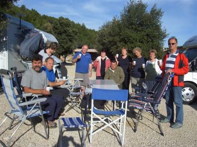 Francija je prijazna avtodomarjem, nudi ogromno različnih počivališč. To sva z Brankom izkusila že na preteklih potovanjih po Franciji in prav zaradi tega je začel v katalogu postajališč iskati najbližji kraj za prenočitev. Našel ga je v kraju Visan, na kmetiji Laurent Sourdon, ki se ukvarja z vinogradništvom. Prenočevanje je zastonj, plača se samo elektrika. Kmetija leži dobesedno sredi vinogradov. Ker pa smo Slovenci ljudje z občutkom, smo odšli na degustacijo njihovih vin. Doživeli smo izredno prijazen sprejem, Štefan pa je v pomanjkljivi francoščini (ostali še toliko ne znamo) kramljal z lastnikom in mu razlagal, kje je Slovenija in kakšna vina imamo. Ura, ki smo jo preživeli z domačinom, je bila izredno prijetna in polna smeha. Za piko na i je manjkala samo še večerja, ki pa so jo pridne gospodinje pripravile v trenutku.
