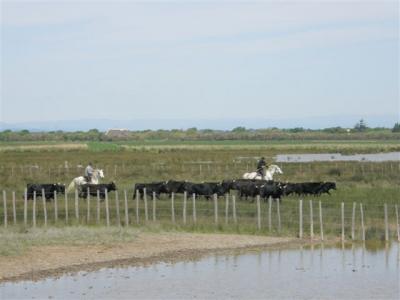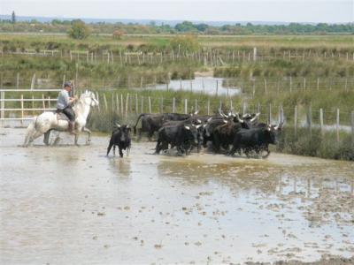 Še eno mesto moram omeniti. To je Aigus Martes. Staro rimsko mestece z obzidjem okoli in okoli ter bogatim rečnim prometom. Po kanalih vozijo turistične ladje, cena je 10 evrov po osebi. Nas je bilo deset, zato smo dobili popust. Za 7 evrov po osebi smo se dve uri vozili po mokrišču, na povratku nazaj pa so nam pripravili predstavo. Pričakala sta nas dva kavboja, ki sta nato gnala čredo bikov čez vodo. Vredno ogleda.