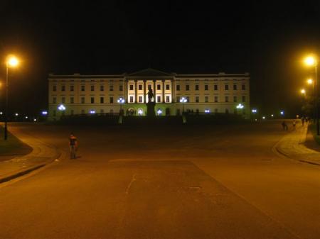 Jure sporoči, da je spodaj v mestu ba PZA-ju, ki je razmeroma blizu centra. OK, ne bomo spali tukaj v miru, gremo v center. PZA je lociran v nekakšni asfaltirani marini (N59,91845 / E10,67597), edini v Oslu, baje tudi kampa ni daleč naokoli. Polno kamperjev, ljudje na asfaltu večerjajo, igrajo karte, otroci rišejo s kredami po tleh svoje umetnine. Idila za 120 NOK (15 €) za 24 ur. Razmeroma blizu centra pomeni slabih 5 km. Gremo mi raje poskusiti srečo nekam bližje centra. Spet skozi mitnico, ki je tokrat presenetljivo blizu centra in naprej do Vigeland parka, kjer najdemo parkirni prostor (N59,923426 / E10,701395). Ob 22 uri se peš odpravimo v dobra 2 km oddaljeno središče Osla. V temnih ulicah rabimo kar nekaj časa, da se orientiramo in točno opolnoči osvojimo kraljevo palačo, mestno hišo, Nobelov inštitut ... Ob enih zjutraj, ko srečno najdemo svoje domačije, zaspimo kot ubiti.