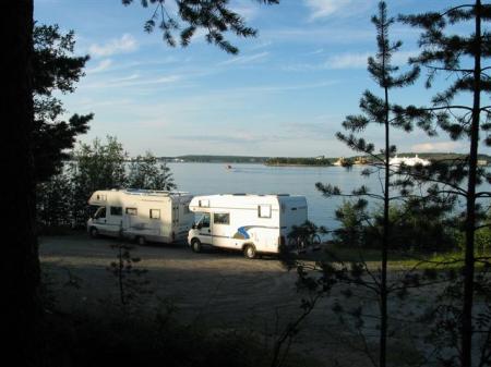 Tudi Švedi so delavni na cesti, še v Stockholmu nas doleti manjši zastoj, vendar smo kmalu na lepi in neprometni avtocesti proti Uppsali, mimo Gavle, Soderhamna, Hudiksvalla do Sundsvalla. Pokrajina ob cesti je tukaj bolj prijazna, veliko je jezer, ob cesti smreke in breze. Ker smo trije kamperji, tudi pogovor po CB-ju zelo pomaga, da je vožnja manj dolgočasna. V Sundsvallu se razgibamo po Ikei (N62,44462 / E17,33406), ki je ob poti. Strokovnjakinja za Ikee ugotovi, da je ta tukaj na Švedskem še manjša od one v Gradcu. Nek švedski par mi je na PZA v Stockholmu predlagal, naj gremo v nekakšen narodni park v obmorski vasici Barsta. Pa pojdimo tja. Skozi gozdove in mimo jezer pridemo do .... kampa v Barsti. Tole pa ni za nas, po ogledu zanimive vaške cerkvice gremo raje nekaj višje na parking ob obali pri mestecu Naske, kjer je bil lansko leto že naš prijatelj s foruma, OB in imamo njegove GPS koordinate (N63,15246 / E18,51341). Da vidimo kaj za njega pomeni čudovit zaliv. Res je lepo in mirno, tudi vreme se je izboljšalo, tukaj bomo odlično spali.