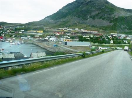 Ob 12:30 se odpeljemo nazaj preko prelaza, pred 6870 m dolgim podvodnim tunelom nas spet doleti plačilo tunelnine po istem sistemu, kot ob prihodu. Dogovorimo se, da glede na prebran potopis prijatelja naredimo 120 kilometrski ovinek do Hammerfesta, ki je baje nasevernejše mesto na svetu. Verjetno so vsa mesteca, ki ležijo nad njim, za Norvežane samo vasice. Pričakujemo seveda preveč, Hammerfest je razmeroma veliko industrijsko mesto, za videti nič zanimivega, le v malem parku srdi mesta ob povratku opazimo nekaj severnih jelenov. Teh imam jaz že itak polno kapo, ker se nam stalno nekje sprehajajo ob in po cestah. Razočaranje jim vrnemo tako, da na urejeni sanitarni postaji (N70,65254 / E23,66124) pustimo vsebino naših WC kaset in napolnimo vodo.