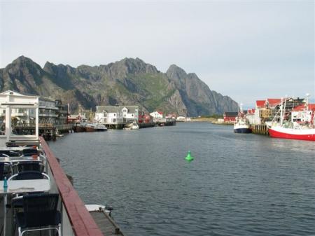 Zdaj pa resno, ob 11:30 gremo nazaj do Sortlanda in navzdol na Lofote, da vidimo to tako opevano čudo. Pred mestecem Melbu, kjer je trajektno pristanišče, sem ob cesti opazil sanitarno postajo za kamperje (N68,5017 / E14,8111). Mi smo prazni, zato gremo takoj v majhno vrstico za trajekt (N68,49815 / E14,80221). Tukajšnji prodajalci kart so neusmiljeni, od mene celo zahtevajo dokumente o vozilu. Jasno, da mu prometno dovoljenje nič ne pove, kljub temu vsem trem zaračunajo 243 NOK (30.4 €), kar je cena za 6-7 metrske kamperje. Vsi trajekti so za tako dolge kamperje cca. 2,5 krat dražji od osebnega vozila oz. vozila, krajšega od 6 m. Nateguni iz severa, mene tu ne vidijo več!! Trajekt je tipa, kjer ni dovoljeno ostati v vozilu. Podpalubje hermetično zaprejo, potnike prej odženejo iz vozil in navzgor v moderen salon ali na palubo. Po vožnji s trajektom se kmalu ustavimo v mestu Svolvaer, kjer se sprehodimo po manjši tržnici in si ogledamo nekaj trgovinic in turistični biro. Naslednji cilj je Heningsvaer. Po nekaj km izven glavne poti po dokaj ozki, vendar lepi panoramski obalni cesti parkiramo na začetku ribiške vasice, znane kot Lofotske Benetke (N68,1562 / E14,20816). Res je precej stavb na kolih nad vodo, zanimivo za sprehod, vendar nič pretresljivega. Nekaj manjših prodajaln spominkov, nekaj gostilnic in barčkov ter delavnica, kjer si lahko obiskovalci iz taljenega stekla izdelajo svojo stekleno umetnino. Seveda je vse drago kot žafran.