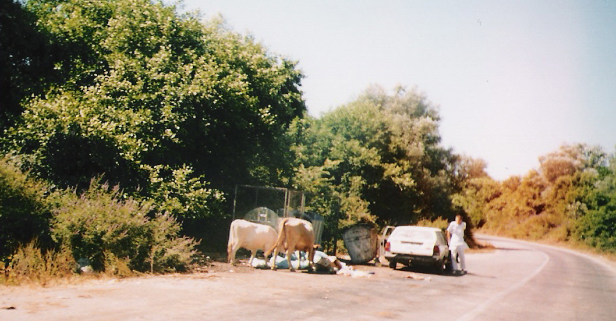 Zjutraj vstanemo, skuhamo kavo in zajtrk in kmalu za tem odrinemo naprej. Ne nameravamo do skrajne točke obale Črne Gore, ampak samo do zaliva Masline, kjer naj bi se nastanili v kampu Utjeha (cca 10 km iz Bara v smeri Ulcinj). Ko prispemo v zaliv ugotovimo, da je kamp (N41 59 57,09 / E19 08 58,04) nabito poln, oziroma da je zapolnjen več kot je prostih mest. Odločimo se, da odrinemo naprej in poskušamo najti kamp za tri ali štiri dni. Že prihod v Ulcinj nas preseneti tako, da obstojimo v prometnem neredu, da ne govorimo o vseh naslednjih kampih, ki jih obiščemo vzdolž Velike plaže vse do kampa FKK na Adi Bojani. Kampi so bili večinoma nabito polni, osebje neprijazno, čistoča jim ni bila v krvi, plaža oddaljena 20 in več metrov, po tleh pa mivka, v katero si mimogrede zakopal AD, kar je bila pika na i. Občutek je bil, da smeti ležijo vsepovsod. Pred vhodom v kamp FKK na Adi Bojani pa še svojevrsten dogodek: okoli treh manjših kontejnerjev za smeti je ležalo petkrat več smeti, kot jih drži kontejner, s smetmi pa sta se hranili dve kravi, ki zaradi vročine očitno drugje nista dobili primernejše hrane. (Mala zanimivost : prav na koncu bivše YU obale nam števec pokaže 130000 km).