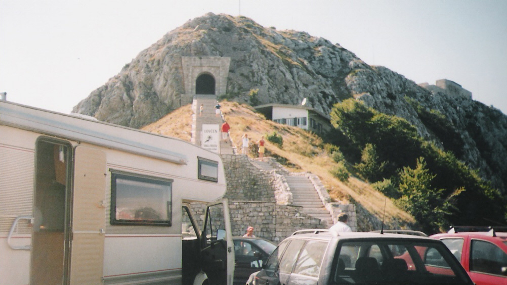 Mi se začnemo dvigovati po ne preveč široki serpentinasti cesti proti Lovčenu, kjer je mavzolej največjega črnogorskega pesnika in vladarja Njegoša. Po nekaj prevoženih kilometrih je rampa, kjer je treba plačati vstopnino v NP (2 euro/osebo). Kot trmoglavi Slovenec zapeljem AD prav do vrha, kjer je sicer manjše parkirišče za približno deset avtomobilov ali tri AD. To dejanje ne priporočam, ker se prav kmalu zgodi, da je parkirišče na vrhu polno in vam ne preostane drugega kakor vzvratna vožnja do obračališča (cca. 400 m).