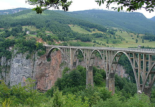Kanjon reke Tare : Cesta skozi kanjon je v dokaj dobrem stanju in skoraj v celotni dolžini dopušča srečanje dveh AD. V svojih 47 km se cesta večkrat dvigne in spusti tako, da turist zares lahko občuduje lepote kanjona in reke Tare. Sicer pa je vsa zadeva podobna vožnji po soški dolini od Kobarida do Trnova ob Soči. Cesta skozi kanjon se konča v kraju Djurdjevića Tara, kjer je tudi veličasten most čez kanjon, katerega si je vredno ogledati (N43 09 00,32 / E19 17 41 82). Tu se med počitkom srečamo s forumašema Božom (Ribič) in Sebastjanom (Sebo), ki sta se z družinama spustila iz Žabljaka (Durmitor) na ogled mostu. Od mosta se vsi skupaj dvignemo po cesti M8 na Durmitor in po 23 km vzpenjanja po lepi in široki cesti dosežemo naselje Žabljak, kjer se nastanimo v kampu Razvršje.