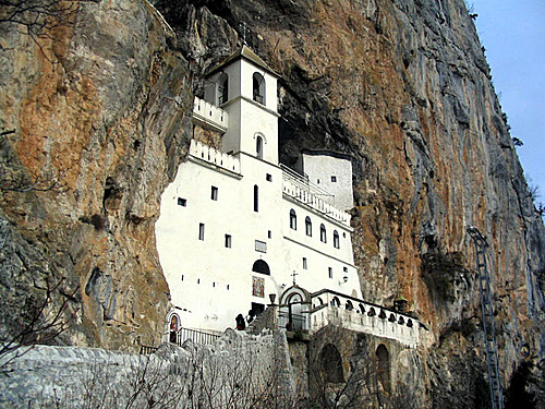 Samostan Ostrog : Izredno pomembna romarska točka vseh pravoslavnih vernikov. Sem prihajajo predvsem bolni verniki, katerim naj bi molitev in bližina samostana pomagala pri ozdravitvi. Tako je na dvorišču samostana mogoče videti nešteto vernikov, ki tam poležavajo, se prehranjujejo in celo prenočijo, čakajoč na ozdravitev ali obrede. V samostanu, kjer je prepovedano fotografiranje, se je mogoče izpovedati, prehoditi neke vrste križev pot ali pokramljati z njihovim menihom. Samostan spada med novejše zgradbe, saj so ga zgradili šele v 19 st.